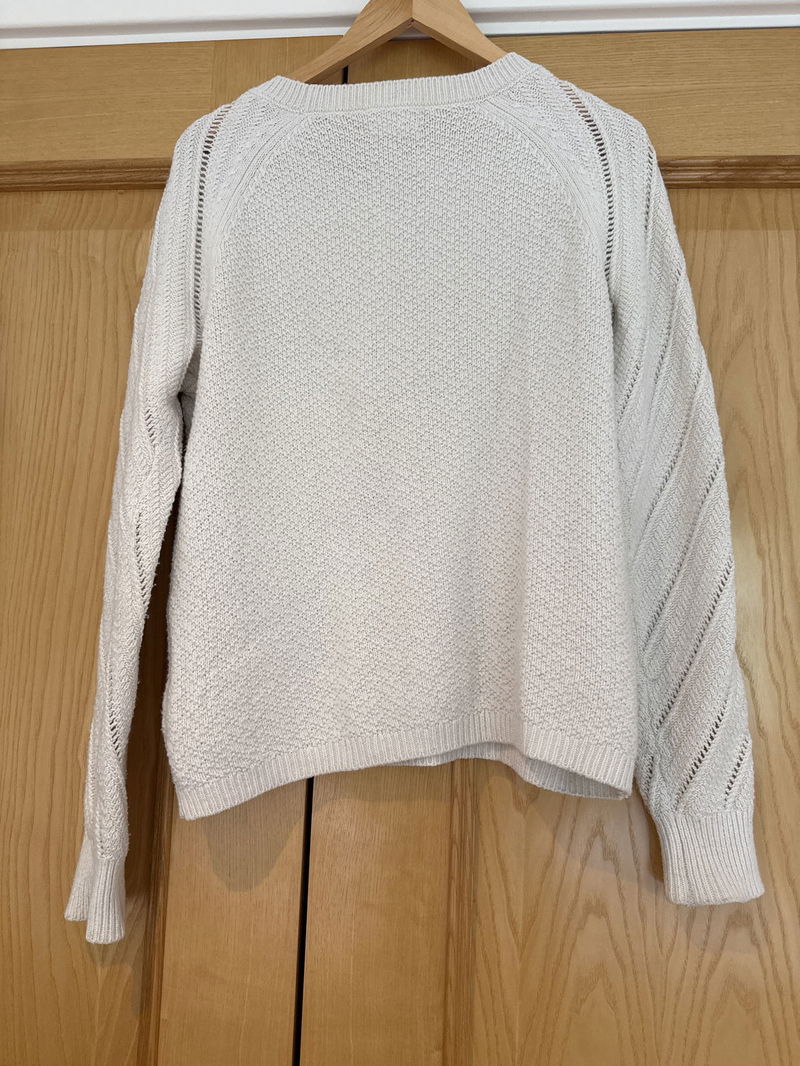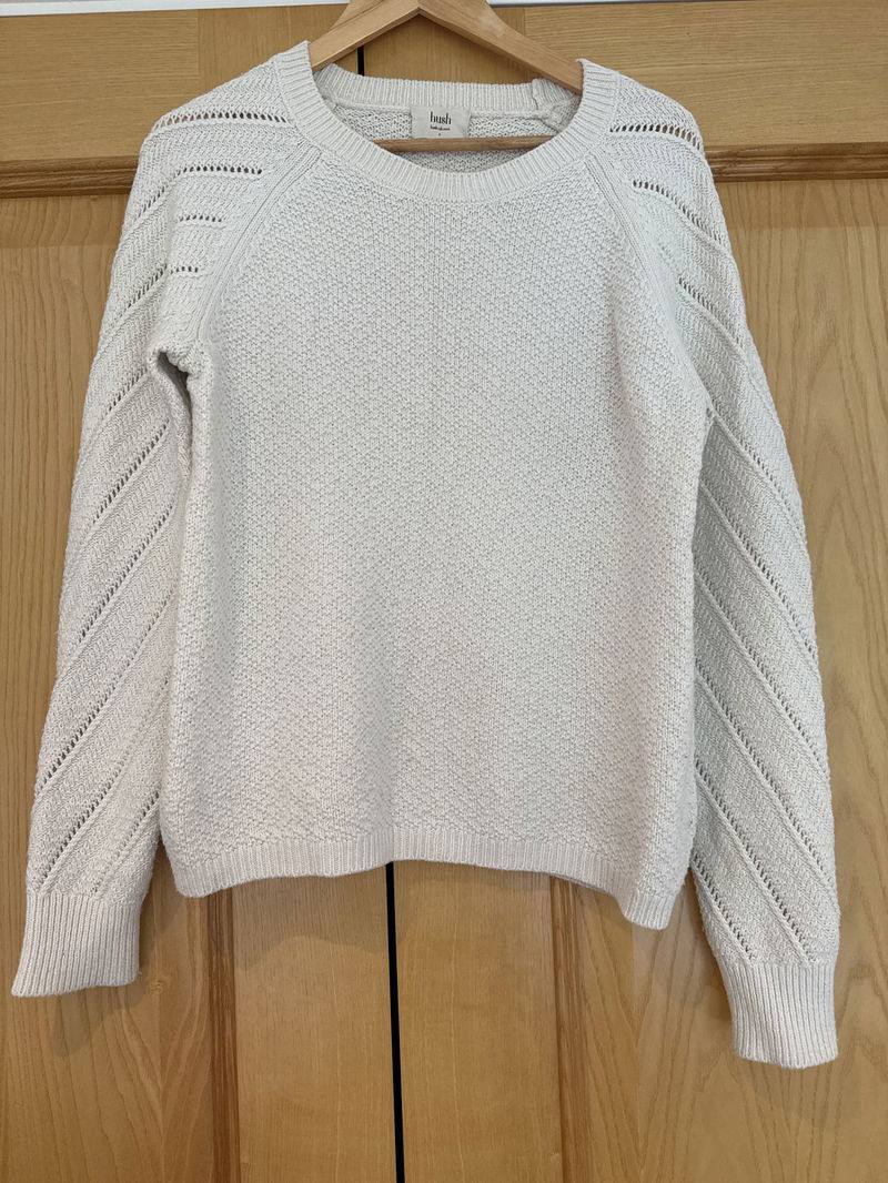 A versatile crew neck jumper that is so easy to throw on for every day. The loose knit stripes on the sleeves create an elegant finish, simply pair with an asymmetric skirt.