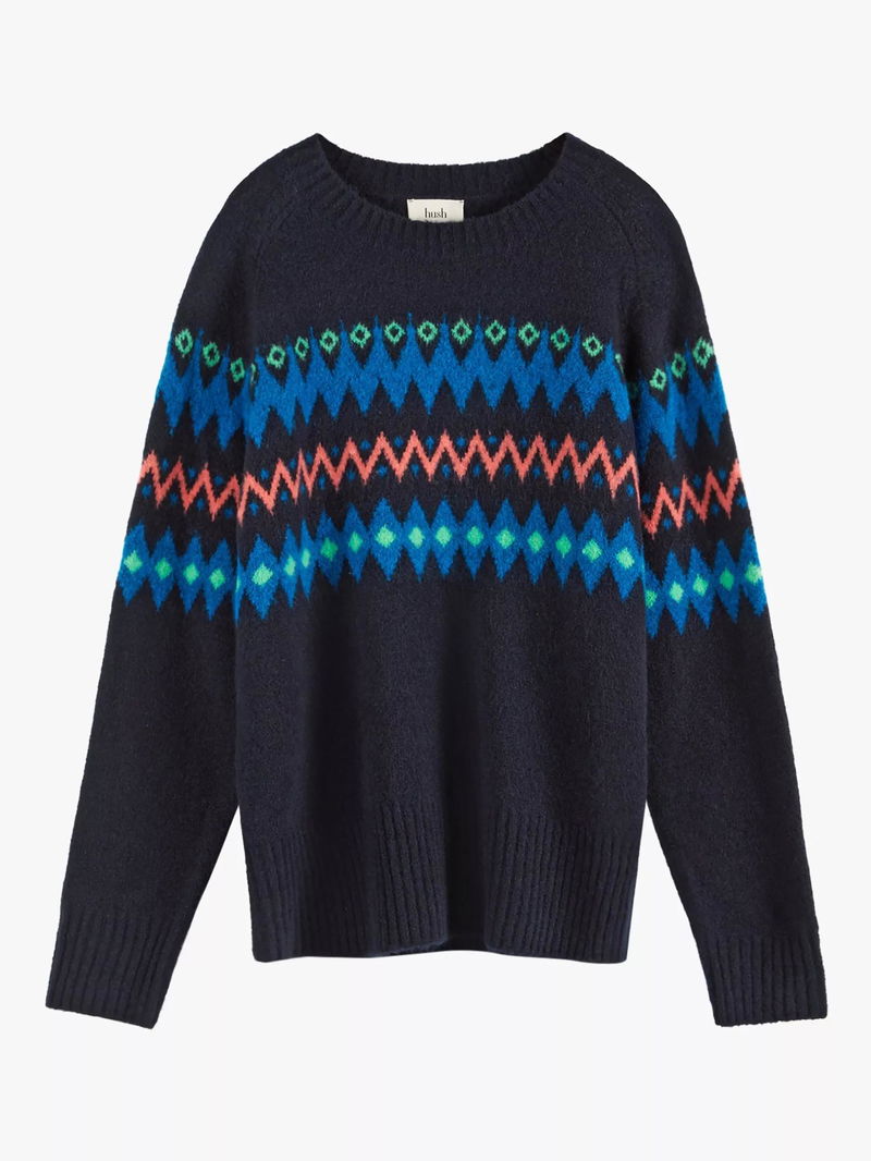 Rhea Fairisle Wol Blend Jumper, Midnight Navy/Blue