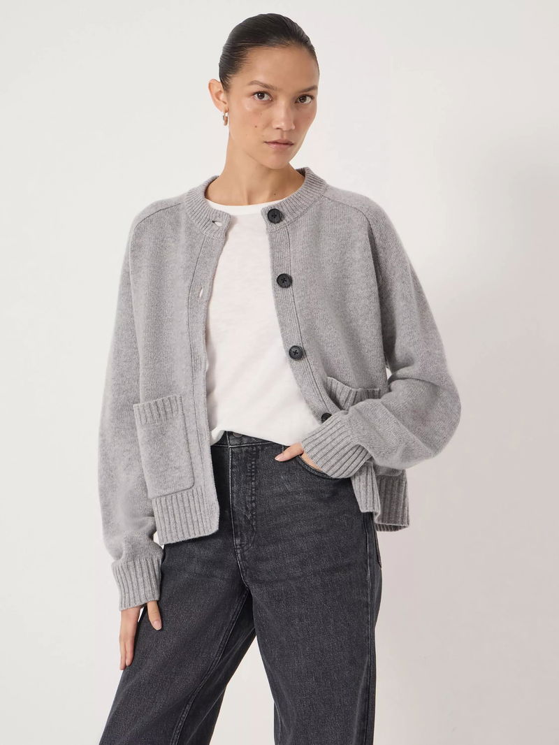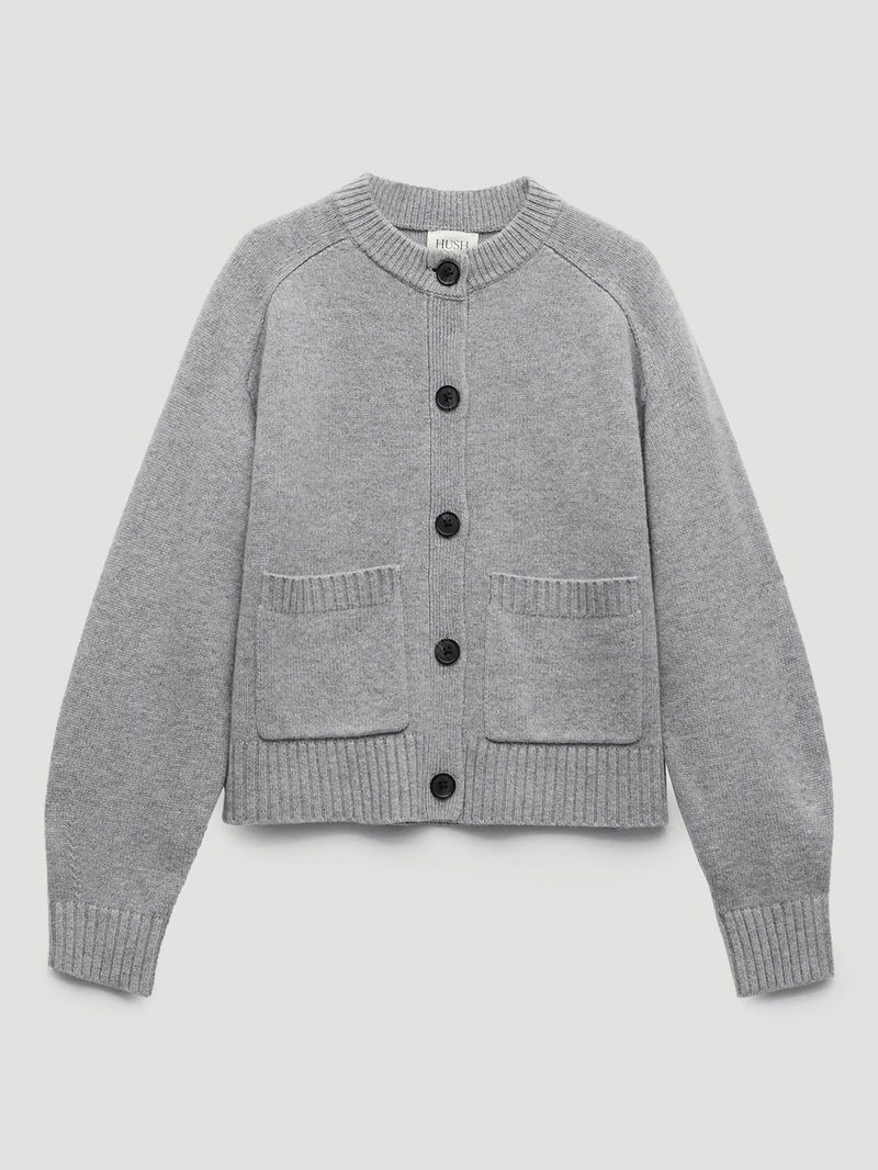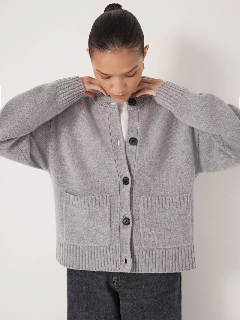 Soph Pure Wool Cardigan, Mid Grey Marl
