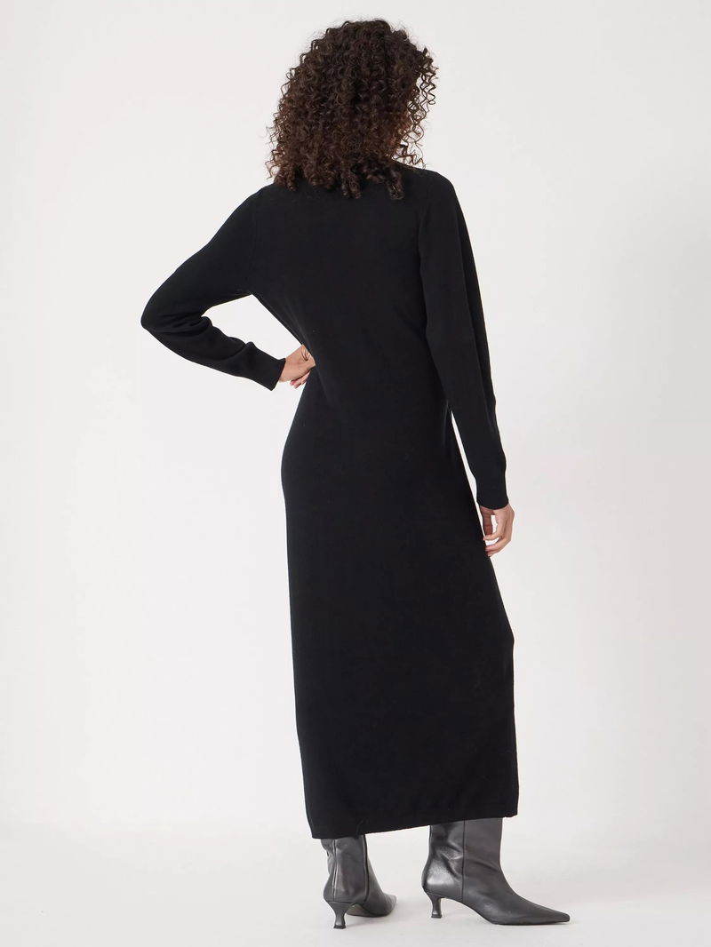 Wrap yourself in softness with this long jumper dress, crafted in 100% merino wool. The tie waist lets you style it your way, while the wrap-over neck and long sleeves keep you comfortable from morning to evening.