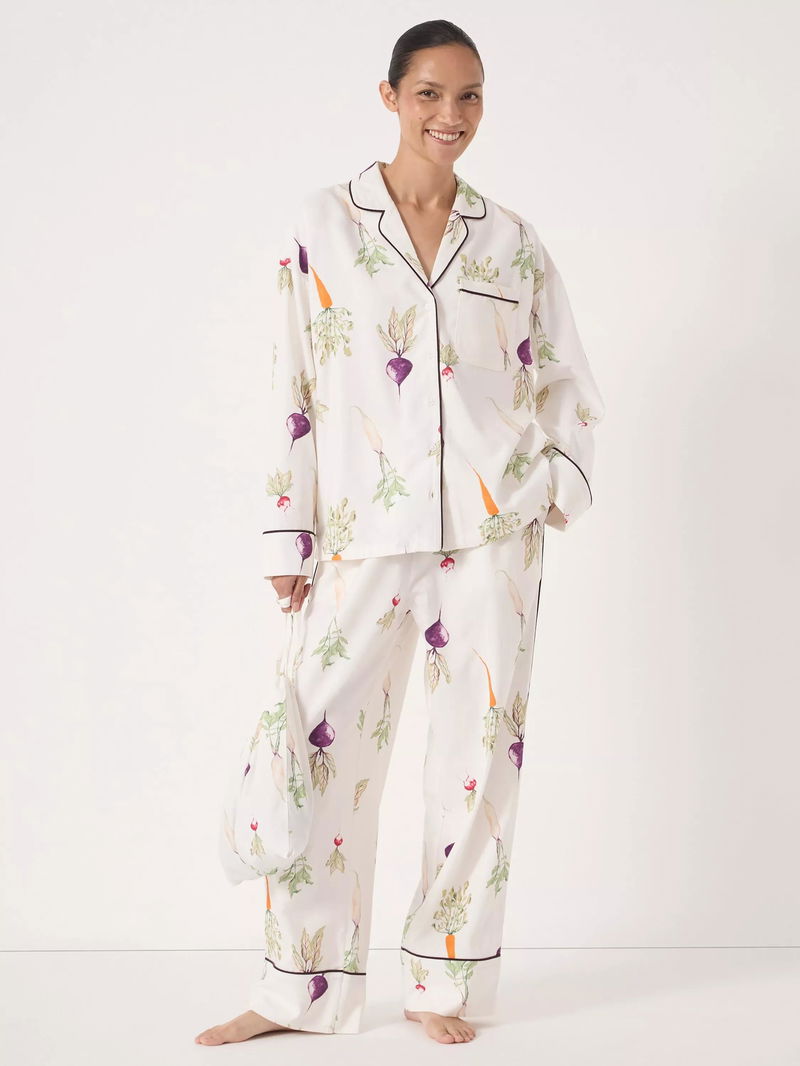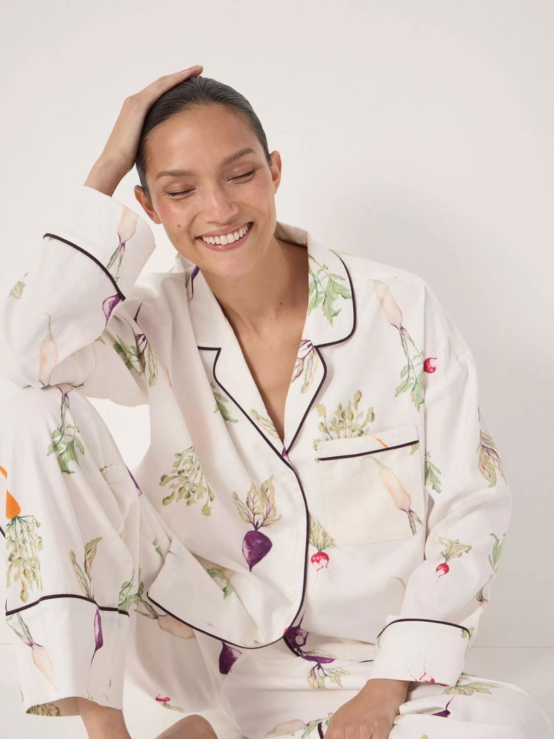 Covered in your favourite veg, this button-through pyjama set by HUSH ensures optimum comfort with its soft cotton blend.