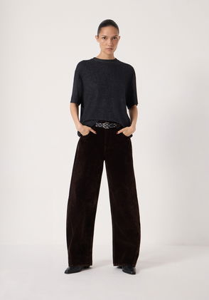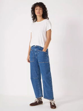 A pair of modern barrel-fit jeans from HUSH, finished in a soft velvet cotton fabric. With a comfortable mid rise and a button and zip fastening, they fall to a regular length.