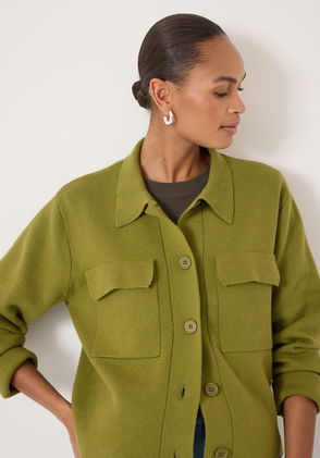 Wool Blend Tiger Jacquard Shirt Jacket.