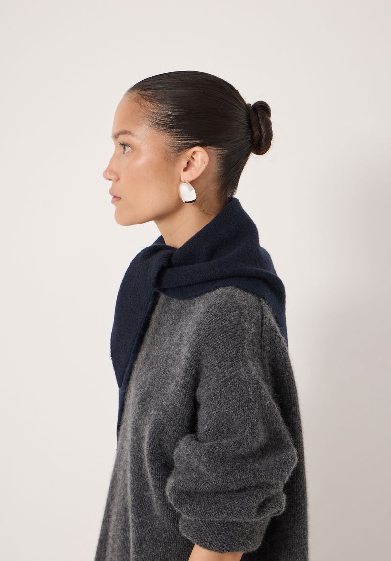 Wondering how to do the whole grandma-chic thing without looking like you're playing dress-up? The soft, knitted texture of this triangle scarf makes it easy, crafted in a cosy wool blend to keep us warm this season.