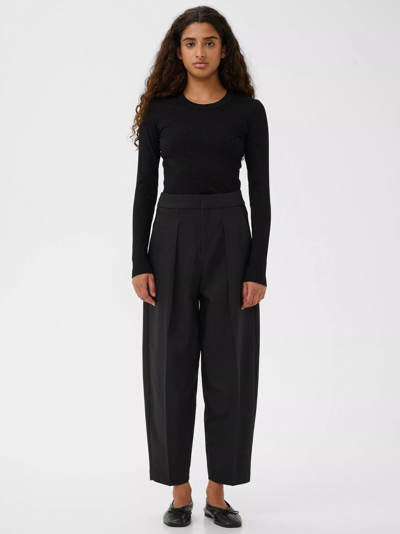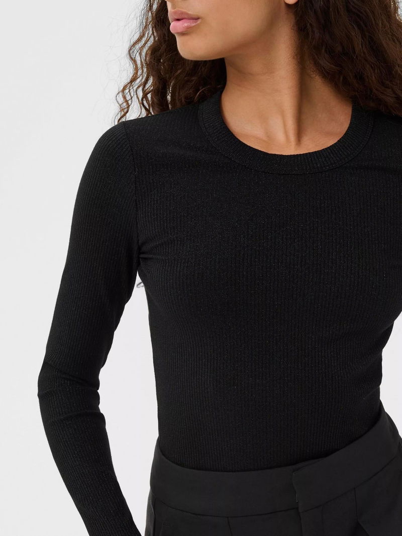 An everyday T-shirt by InWear, offered in a cotton blend for a soft feel. With a scoop neck and long sleeves, the plain colour is enhanced with a glitter finish. One for your everyday lineup come festive season.