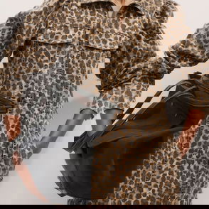 Dress, Leopard-print, Devoré, Fil coupé, Gathered sleeves, Buttoned cuffs, Asymmetric hem, Concealed zip fastening along side, Button-fastening keyhole at back, Partially lined.