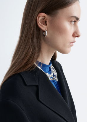 Blazer, Wool-blend, Detachable waist tie, Buttoned cuffs, Belt loops, Button fastening at front, Fully lined, Non-stretchy fabric, Mid-weight fabric.