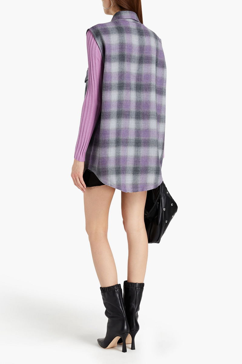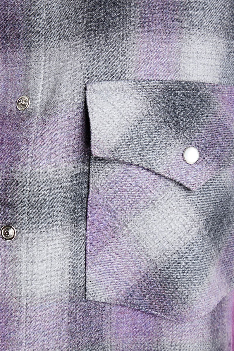 Shirt, Checked, Wool-flannel, Breast pockets, Snap fastenings through front, Curved hem, Non-stretchy fabric, Mid-weight fabric.