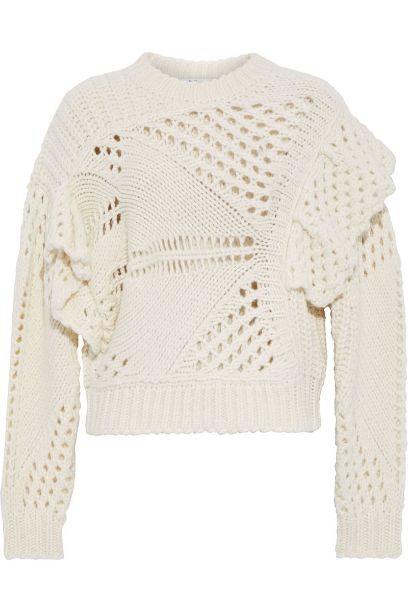 Sweater, Open-knit, Ruffled, Slip on model, Chunky open knit.