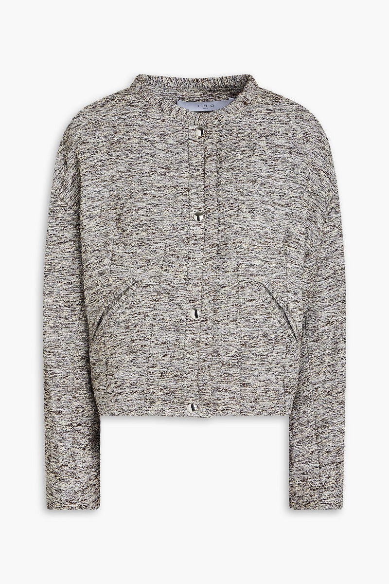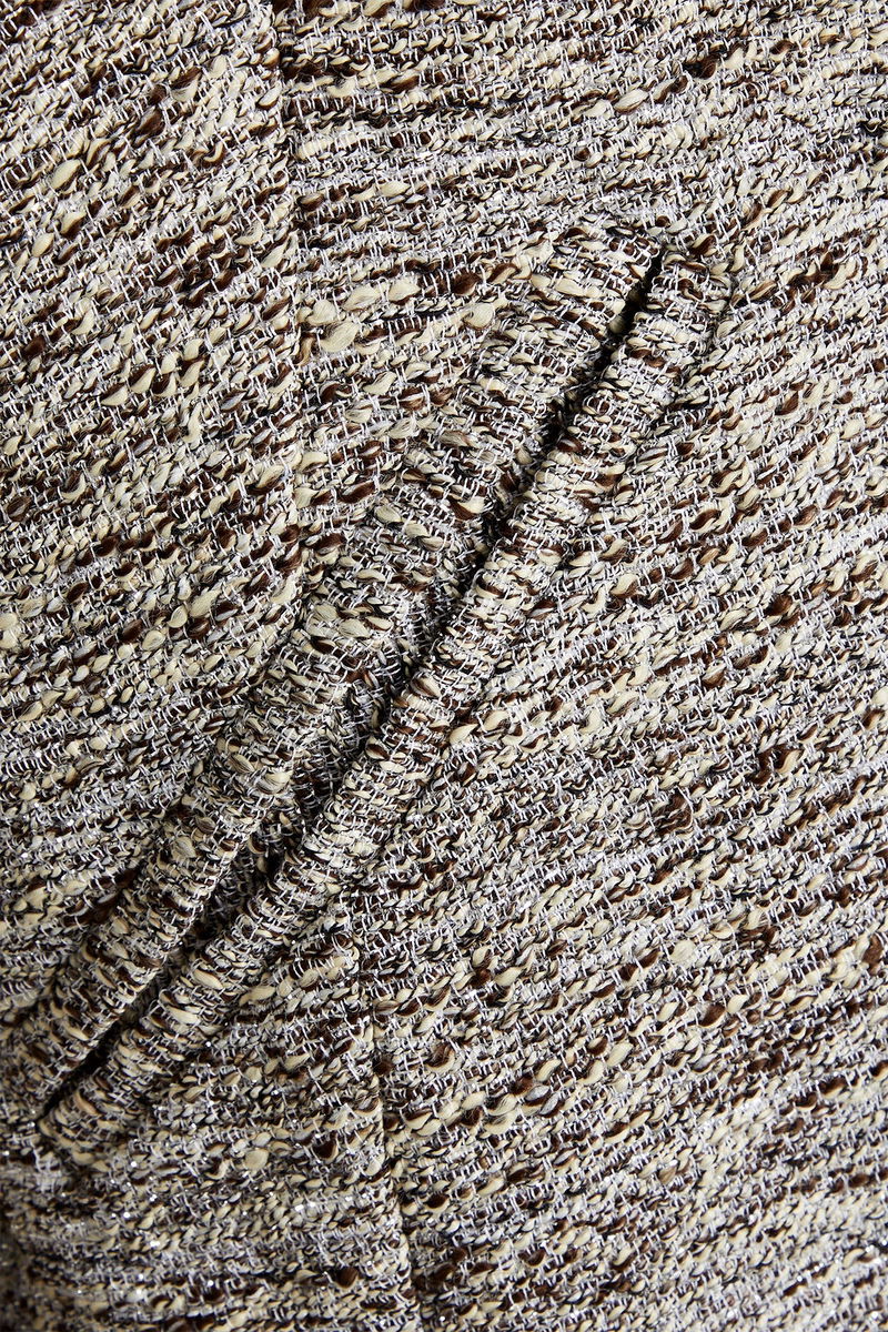 Jacket, Metallic, Tweed, Two front welt pockets, Snap fastenings through front, Fully lined, Non-stretchy fabric, Mid-weight fabric.