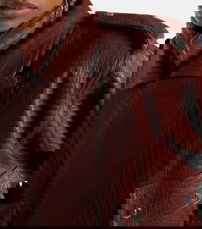 The Adelina jacket by Isabel Marant is crafted from supple lamb leather with a plush shearling collar and lining for added softness. This bold piece is detailed with an asymmetric zip closure and practical pockets.