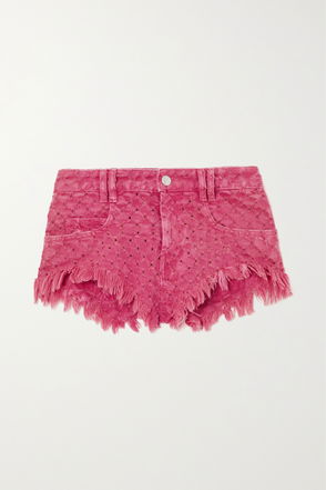 The wispy fringing on Isabel Marant’s ‘Aneida’ shorts highlights the short hems and slim fit. Made from denim, this distressed pair comes in versatile white and has a high-rise waist. Style yours with a printed tee or sweatshirt.