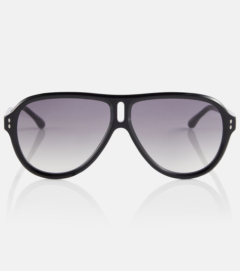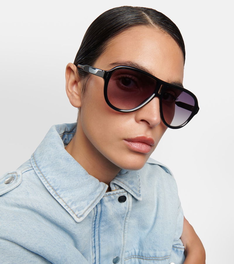 Inspired by aviator sunglasses, these black frames have rounded gradient lenses and a cutout detail between the bridge. Subtle logo branding decorates the right temple.