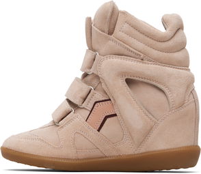 High-top calfskin suede and buffed lambskin sneakers in beige.