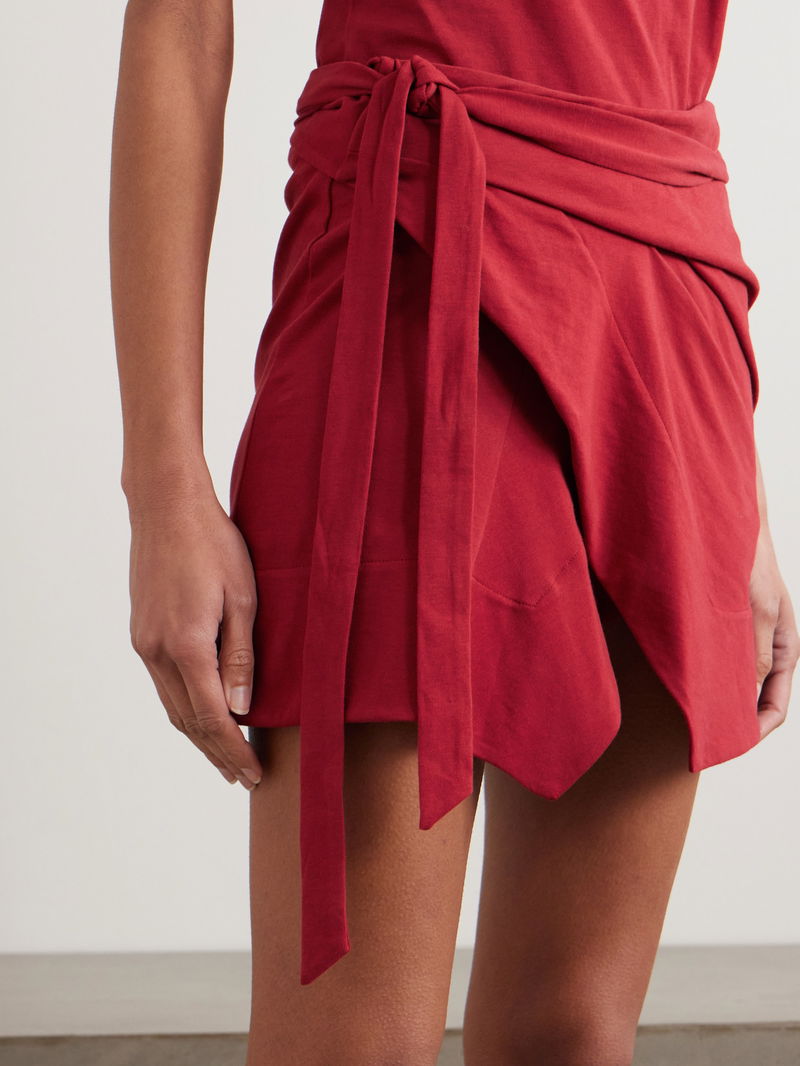 Berenice Asymmetric Draped Cotton-jersey Mini Wrap Skirt