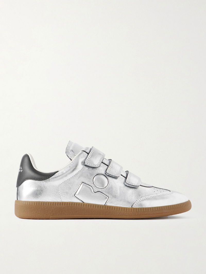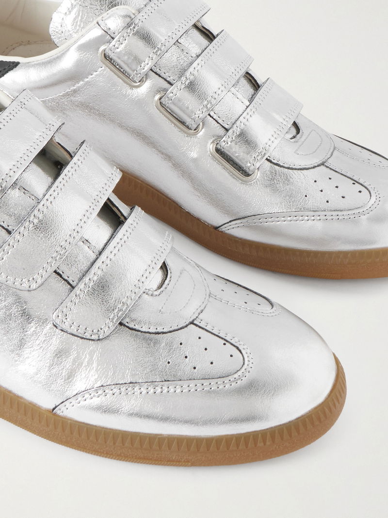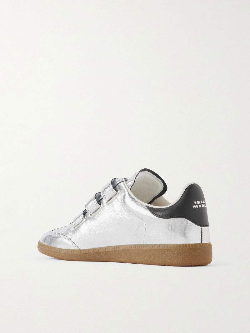 Isabel Marant's 'Beth' sneakers are inspired by traditional tennis shoes. Made from silver leather with contrasting black heel tabs, they have gummed rubber soles, perforated toes and VELCRO® straps to enhance the retro feel.