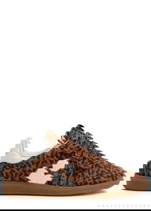 Low-top suede sneakers in beige.· Perforated detailing at toe· Velcro closure· Padded tongue and collar· Padded logo appliqué at outer side· Gold-tone logo stamp at heel tab· Grained sheepskin and terry cloth lining· Rubber crepe midsole· Treaded rubber sole.