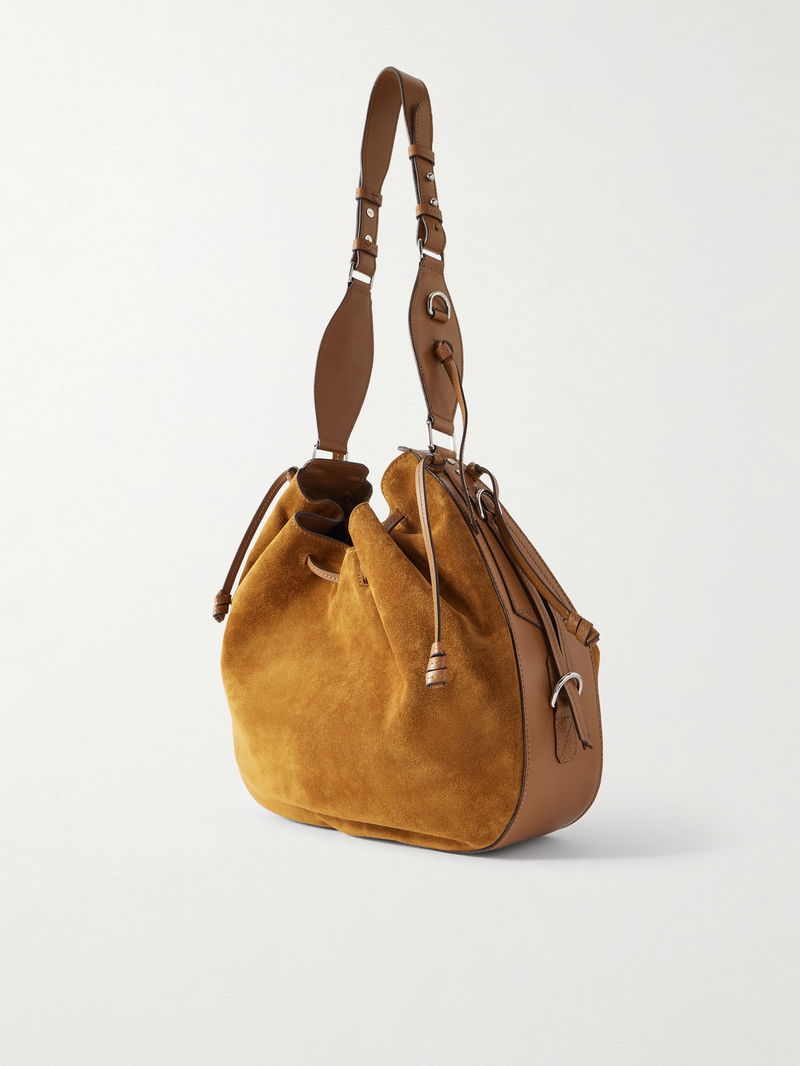Isabel Marant's 'Bolton' bag is threaded with leather drawstrings to create a slouchy shape. Crafted from supple suede, it’s detailed with foiled logo lettering to match the silver-tone hardware and has enough space inside for your phone, planner and wallet. Adjust the shoulder strap to your preferred drop.
