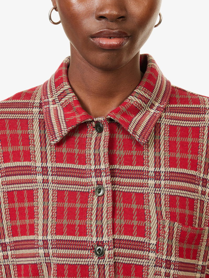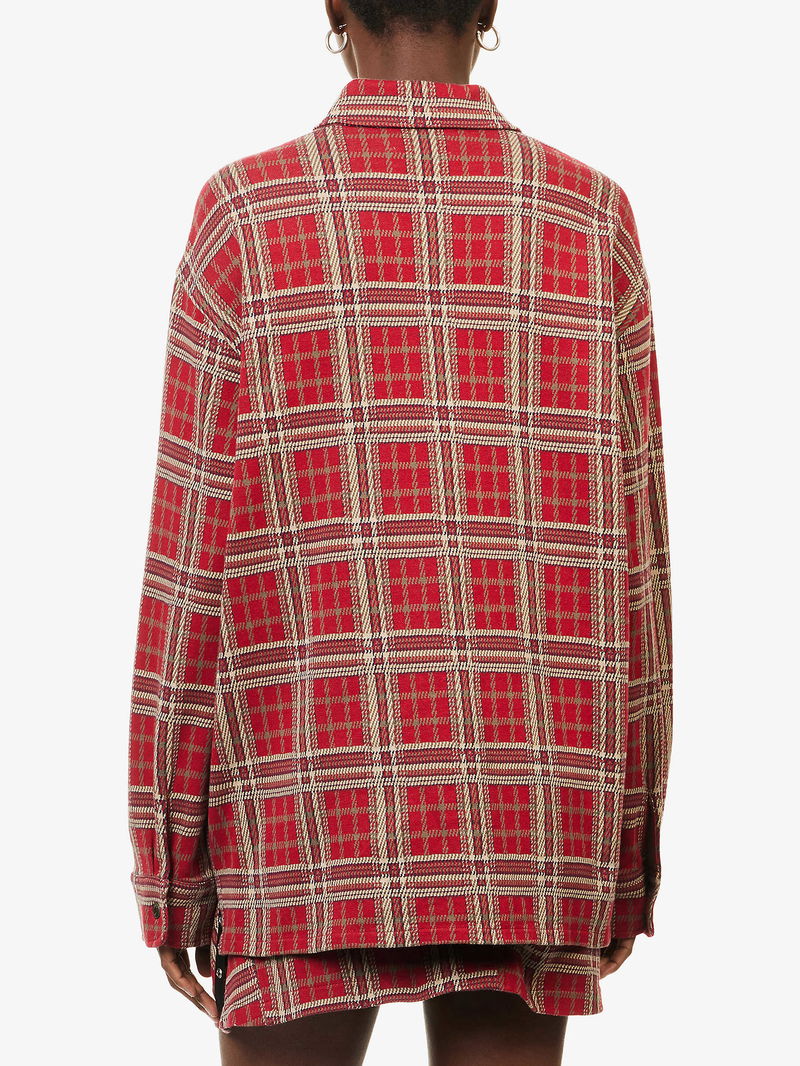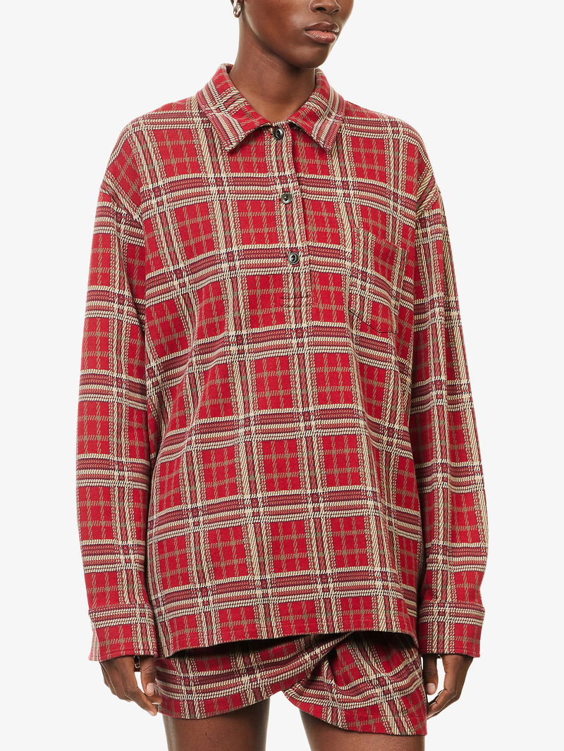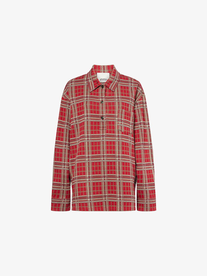 Isabel Marant cotton shirt. Exposed button fastenings at front. Oversized fit, shirt collar, dropped shoulders, one chest patch pocket, long sleeves, buttoned cuffs, side slits, all-over plaid-check pattern.