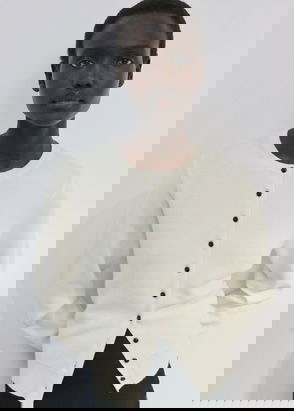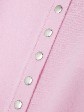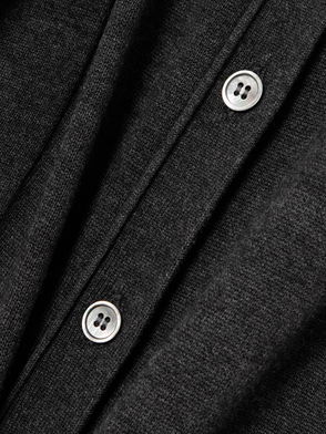 It's knitted for a soft handle and has a straight row of buttons, plus a few to the side so you can style it asymmetrically.
