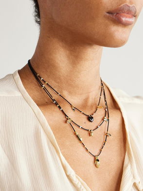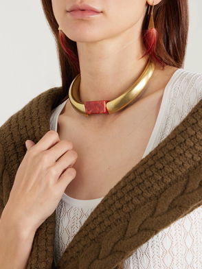 Cable chain necklace in silver-tone brass. · Inset wood detailing at sculptural pendant· Logo plaque at spring-ring fastening.