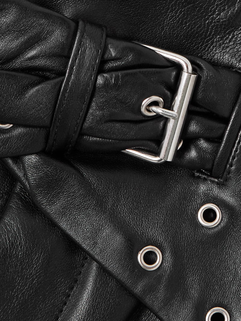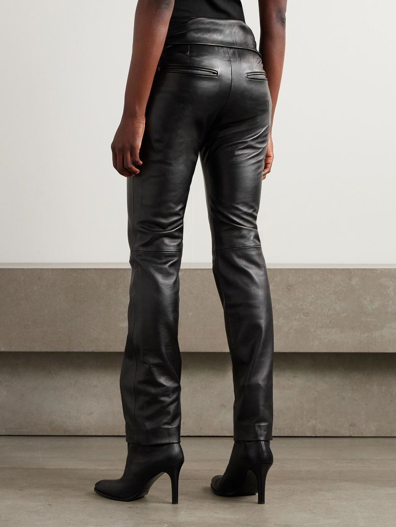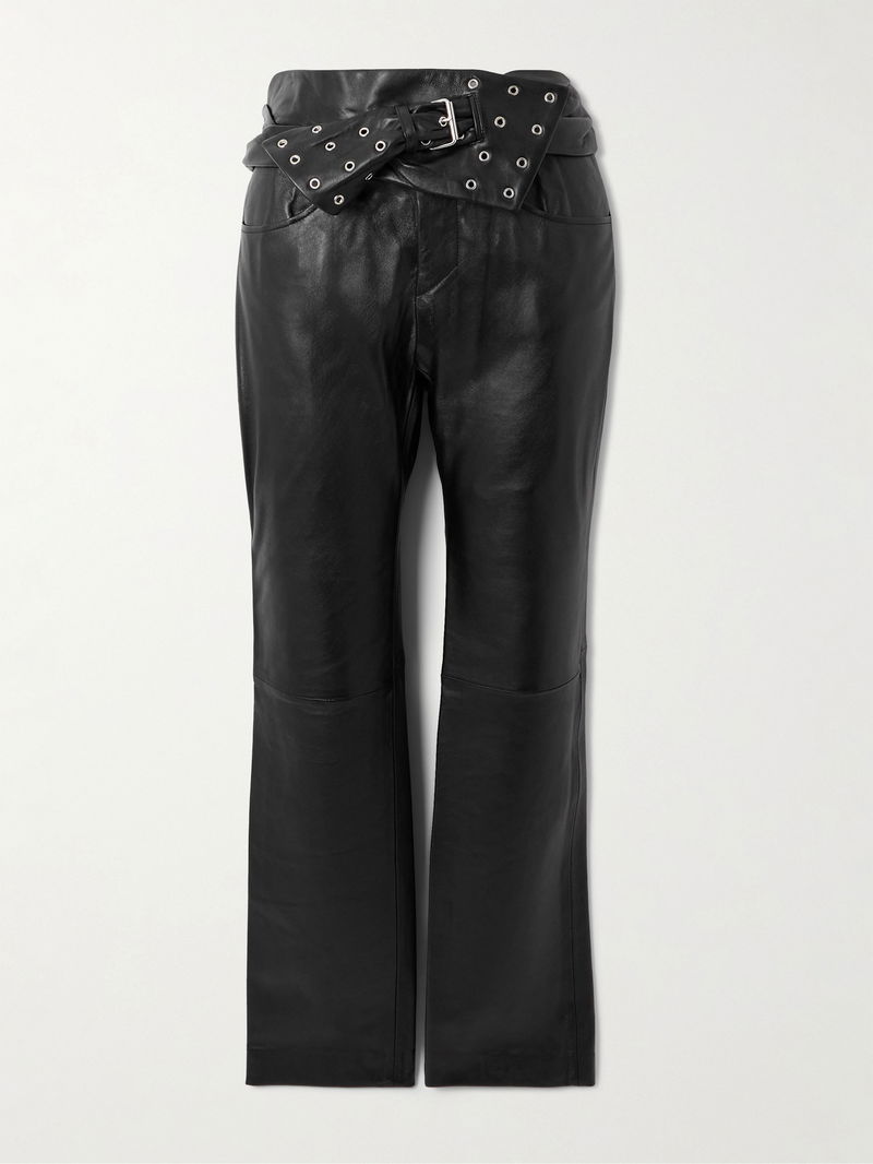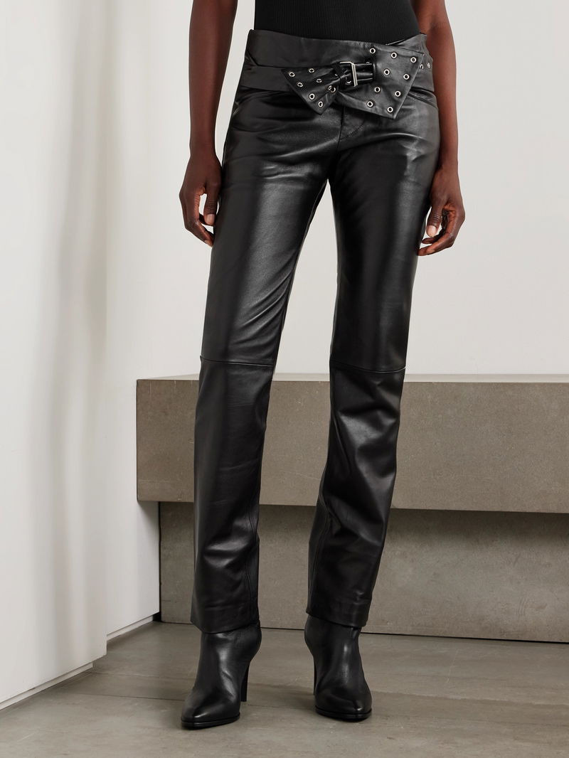 Isabel Marant's pants debuted on the Fall '25 runway, capturing the brand's '80s spirit and "New Wave edge." Cut from smooth leather, they have slim legs and a gathered, eyelet-embellished belt, which highlights the waist.