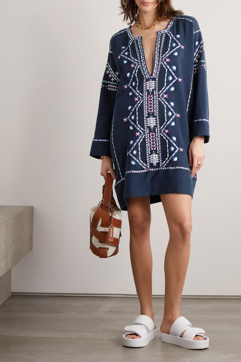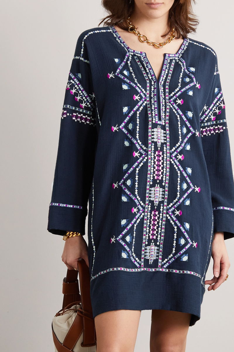 Searching for a new summer dress? Isabel Marant's 'Chemsi' style is perfect because it will double as a coverup on vacations. Made from soft, breathable cotton, it's embroidered with colorful threads and sewn with a scattering of sequins.