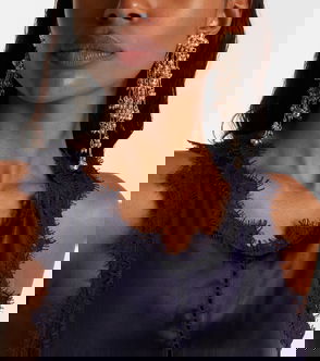 Isabel Marant’s lightweight silver-tone metal drop earrings evoke a particularly opulent mood. They feature a slender hook from which suspends an emerald-cut crystal, an oval-cut blue stone and a crystal-embellished hoop. Wear them above an all-white ensemble as a glittering flourish.