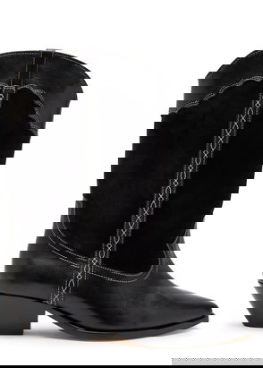 Knee-high polished calfskin boots in black.· Pointed toe· Pull-loops at collar · Leather lining · Stacked leather heel with rubber injection· Leather sole ·