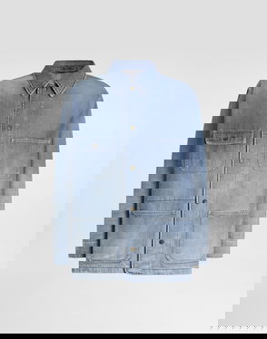 Insulated quilted non-stretch denim jacket. Fading throughout. · Spread collar· Button closure· Flap pockets and seam pockets· Single-button barrel cuffs· Full quilted plain-woven lining· Logo-engraved silver-tone hardware.