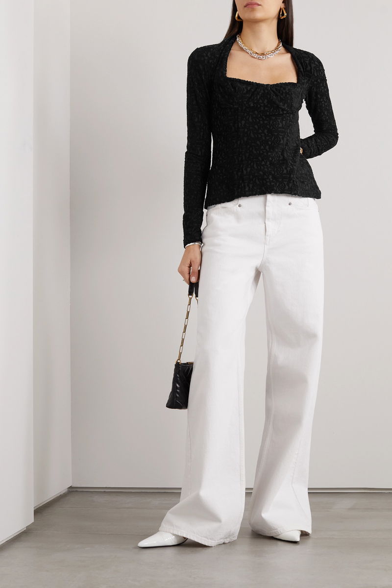 Isabel Marant's 'Dwayne' blouse is one that'll make you feel confident and feminine. It's cut from crepe flocked with a swirly pattern and has a romantic square neckline that beautifully frames your décolletage.