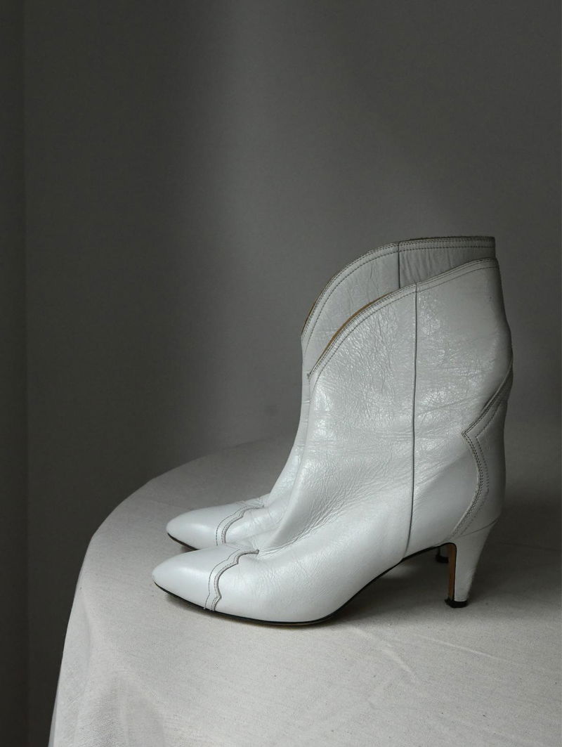 They're trimmed with the designer's signature Western paneling and have sleek conical heels that mirror the sharp pointed toes.