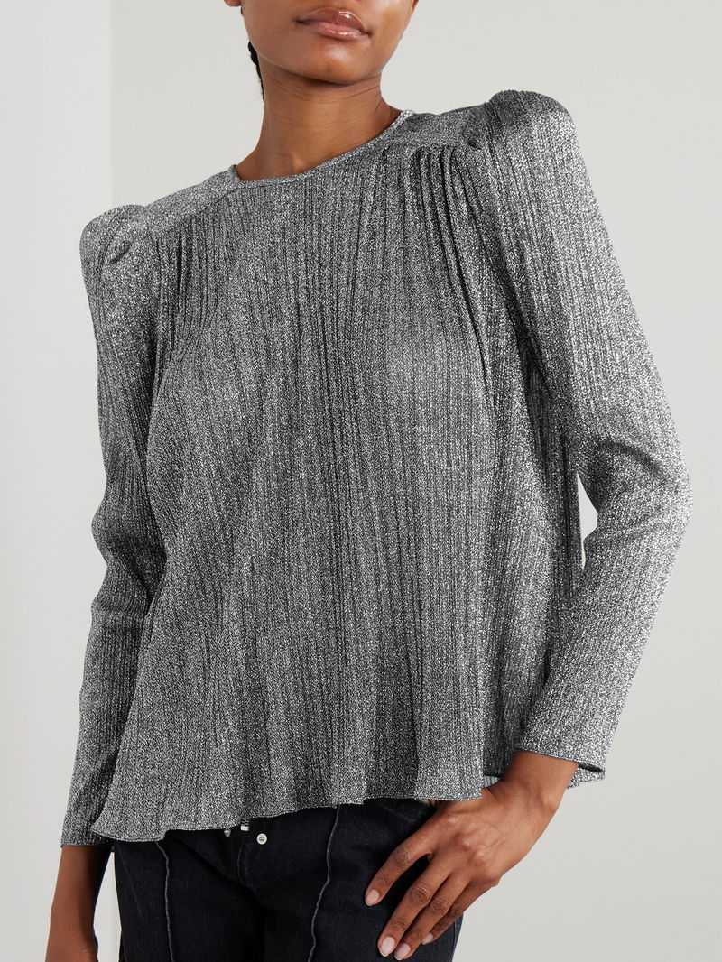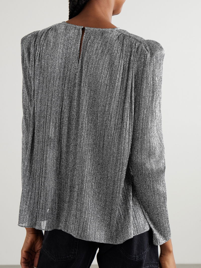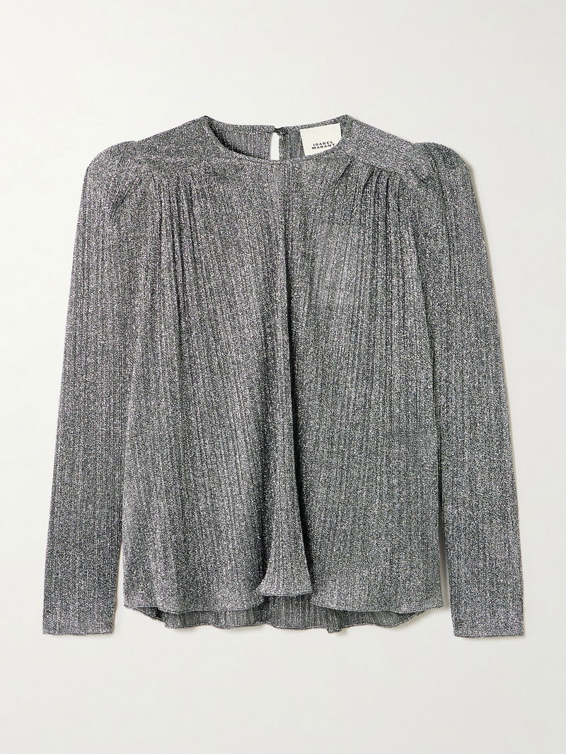 Isabel Marant's 'Eylia' blouse glitters from all angles. It's made from shimmering lamé that's loosely gathered through the shoulders. Wear yours with straight-leg pants and jeans.