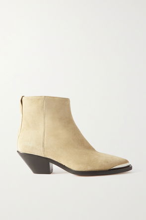 Slouchy boots were a common theme throughout Isabel Marant's Fall '24 show, where they were styled with everything from flowy dresses to cargo pants. This pair is made from supple leather and is designed with slim straps that thread through a silver-tone embellishment. They have pointed toes and sculptural kitten heels.