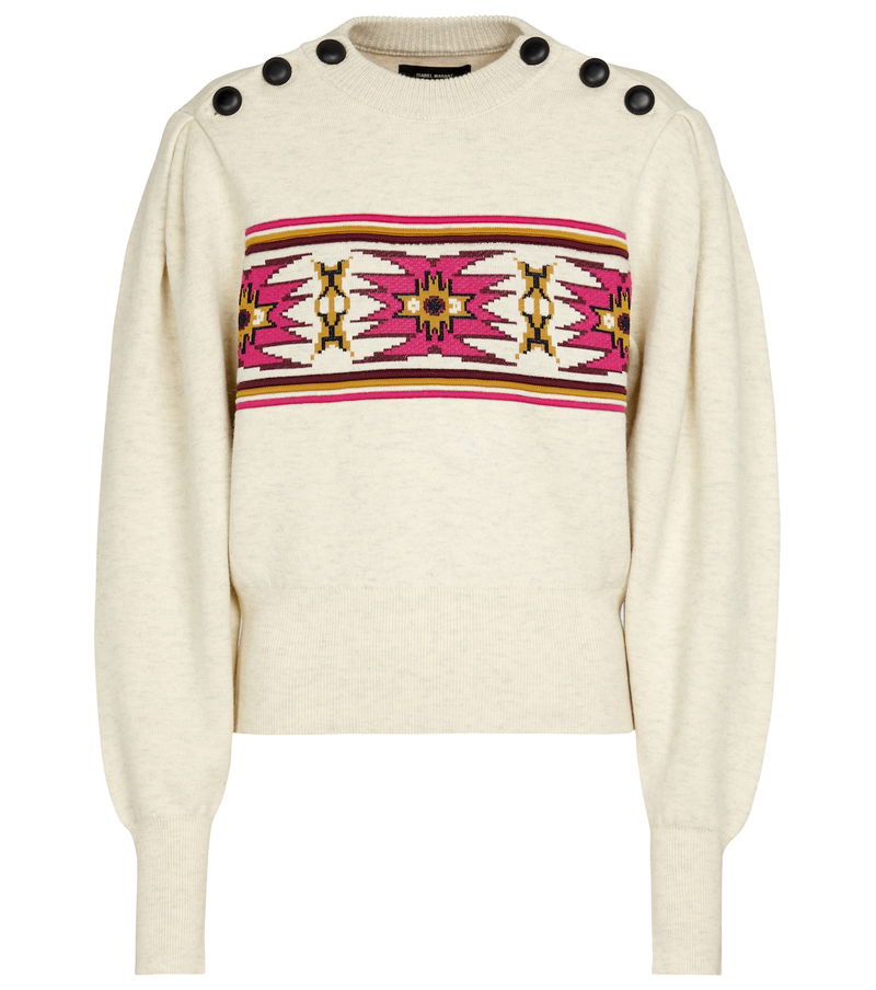 The Erwina sweater receives the Isabel Marant touch in the form of gathered shoulder seams that create volume through the sleeves. The Mytheresa exclusive is patterned with jacquard snowflakes and has oversized shoulder buttons.