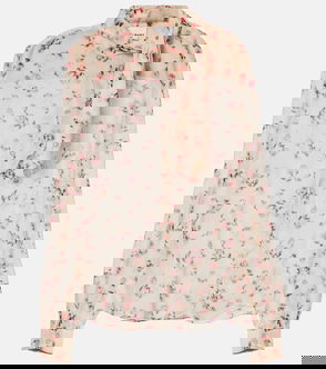 Semi-sheer cotton-blend voile blouse. Pleats and smocking throughout.· Band collar· Eight-button placket· Cropped hem.