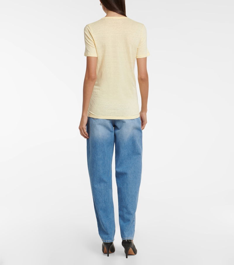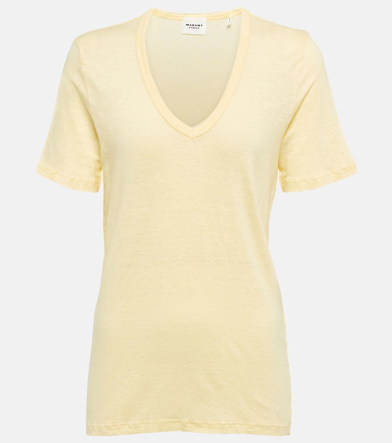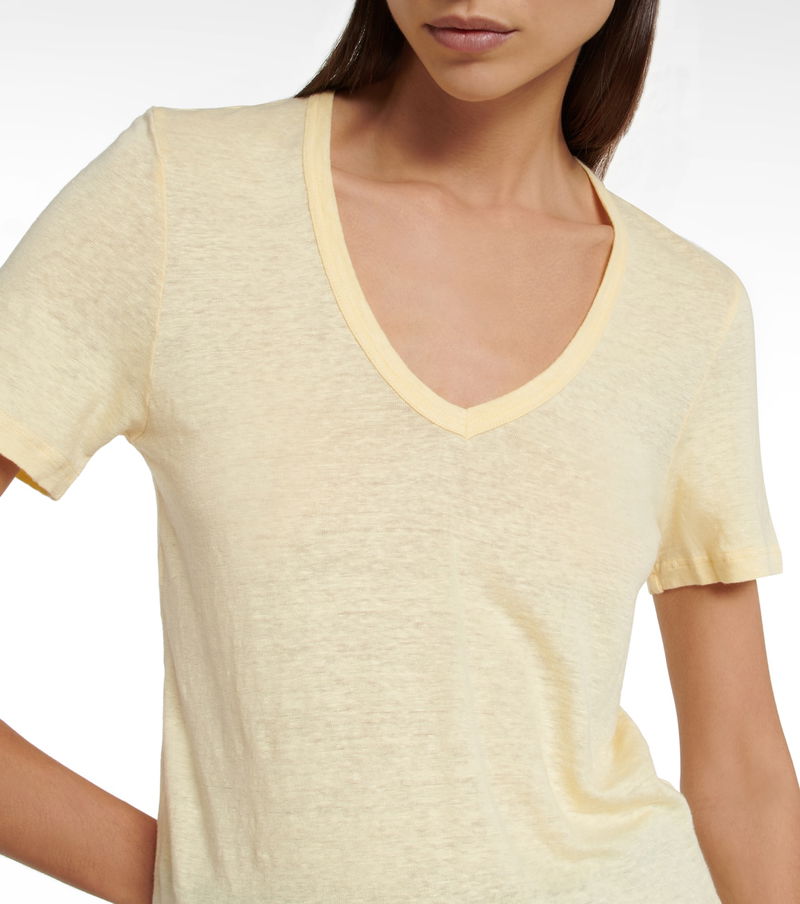 Made from breathable and lightweight slub linen jersey, this yellow style has a deep V-neckline and a slim fit.