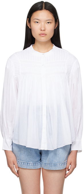 Cotton poplin shirt. Embroidered detailing and cutouts throughout.· Band collar· Button closure· Scalloped edge at hem and cuffs.