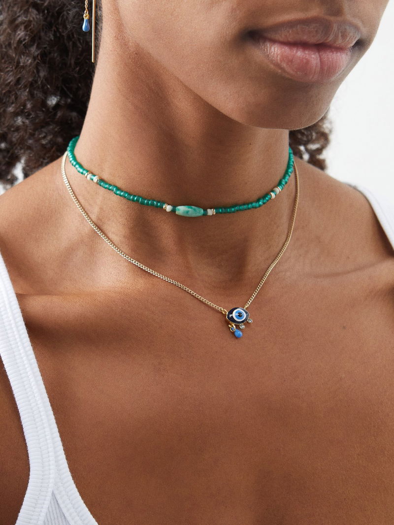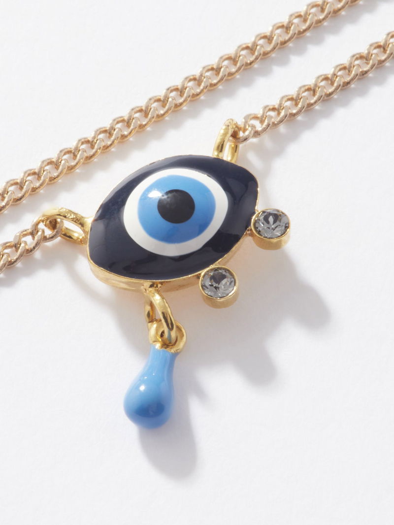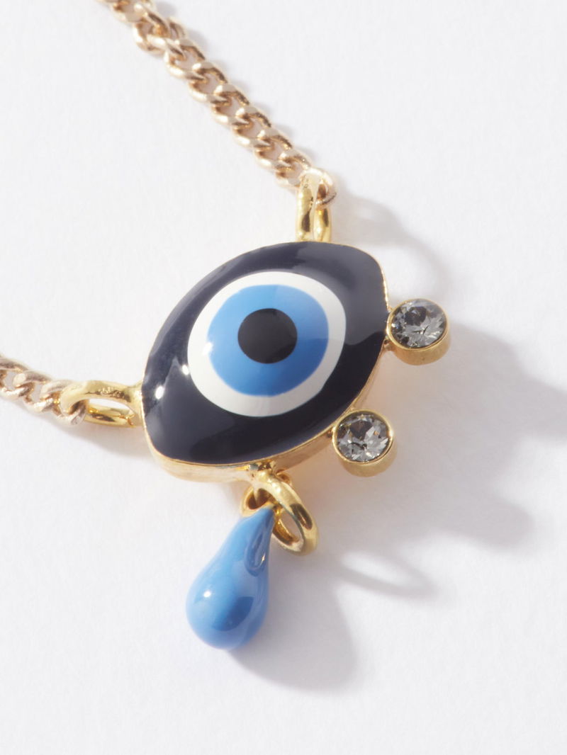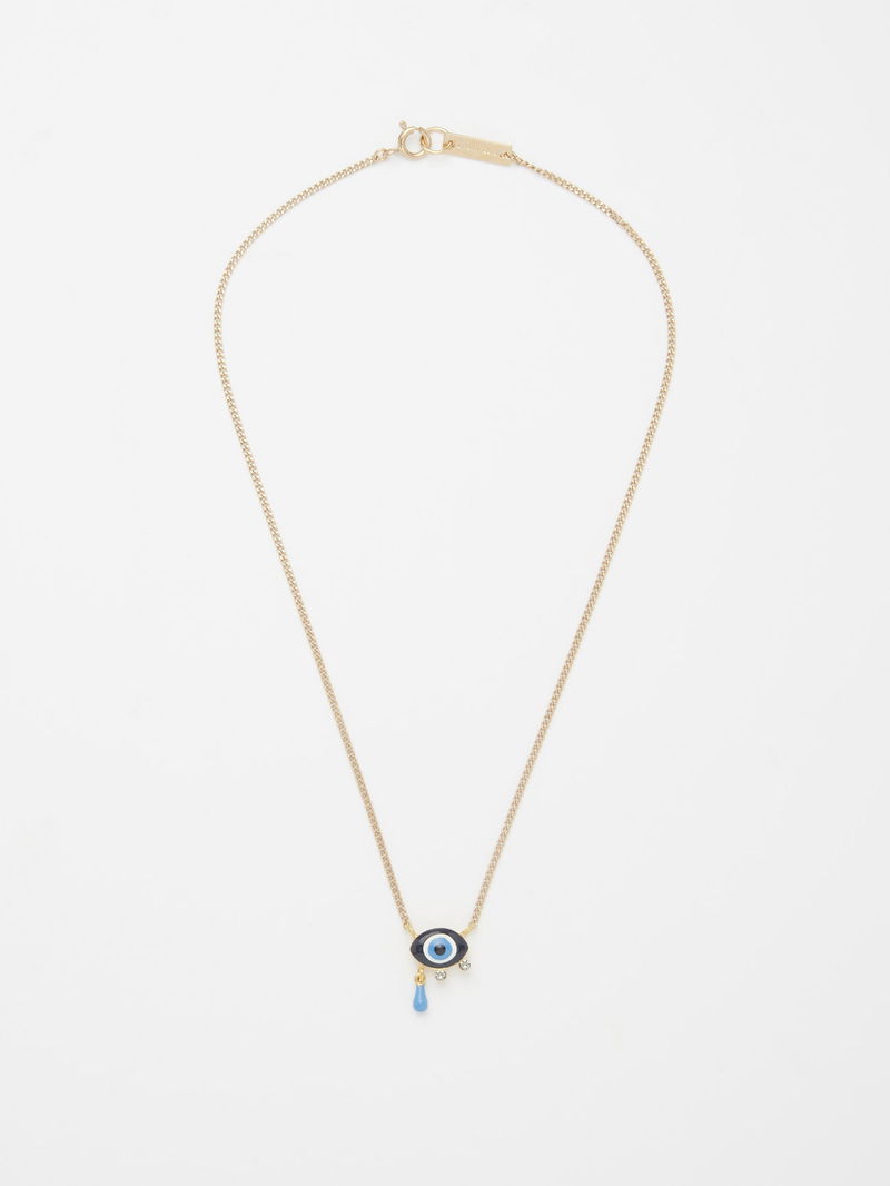 Isabel Marant's elegant necklace is crafted with an enamelled blue Evil Eye and teardrop charm offset by two crystals, channelling the label's bohemian outlook.
