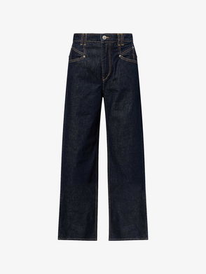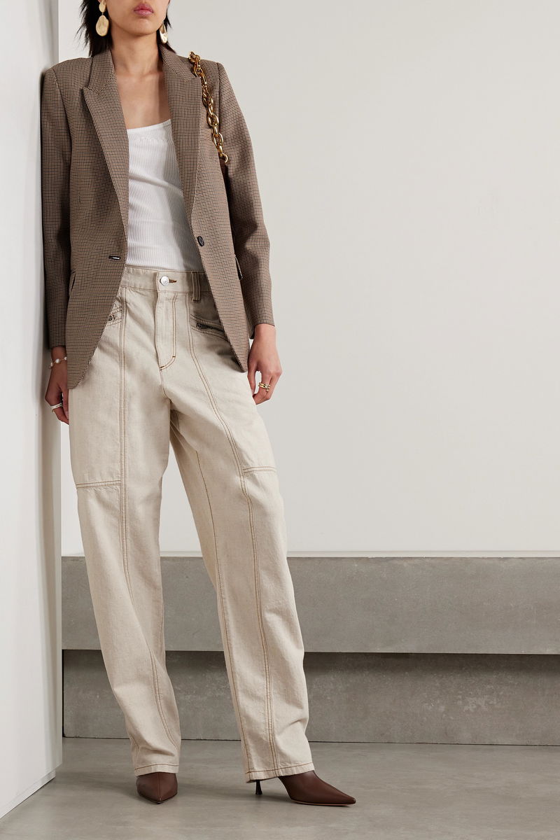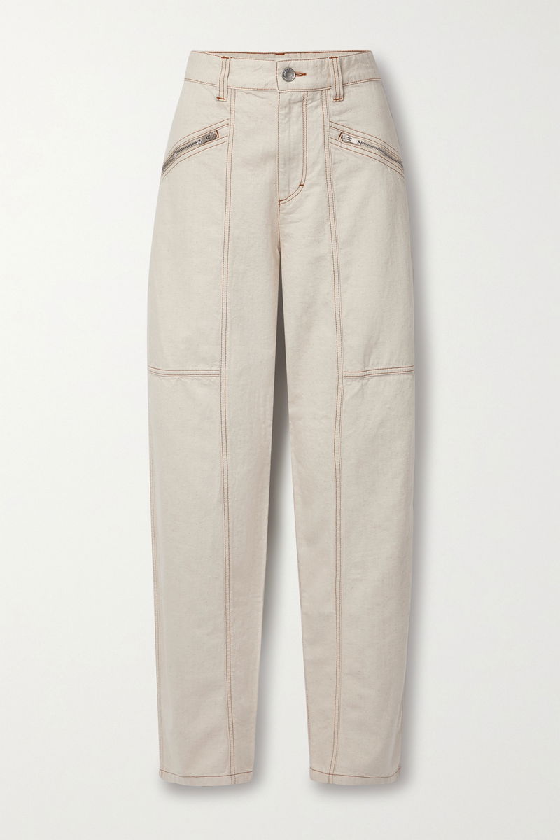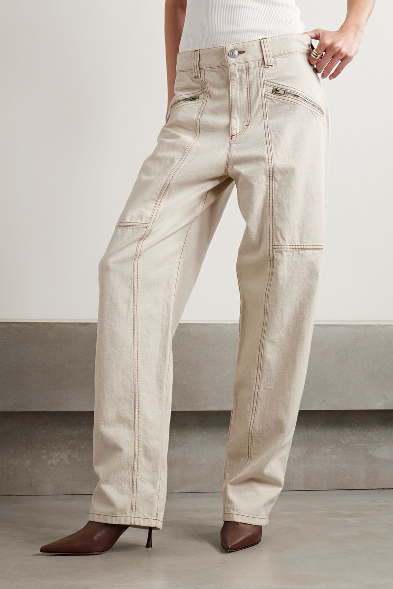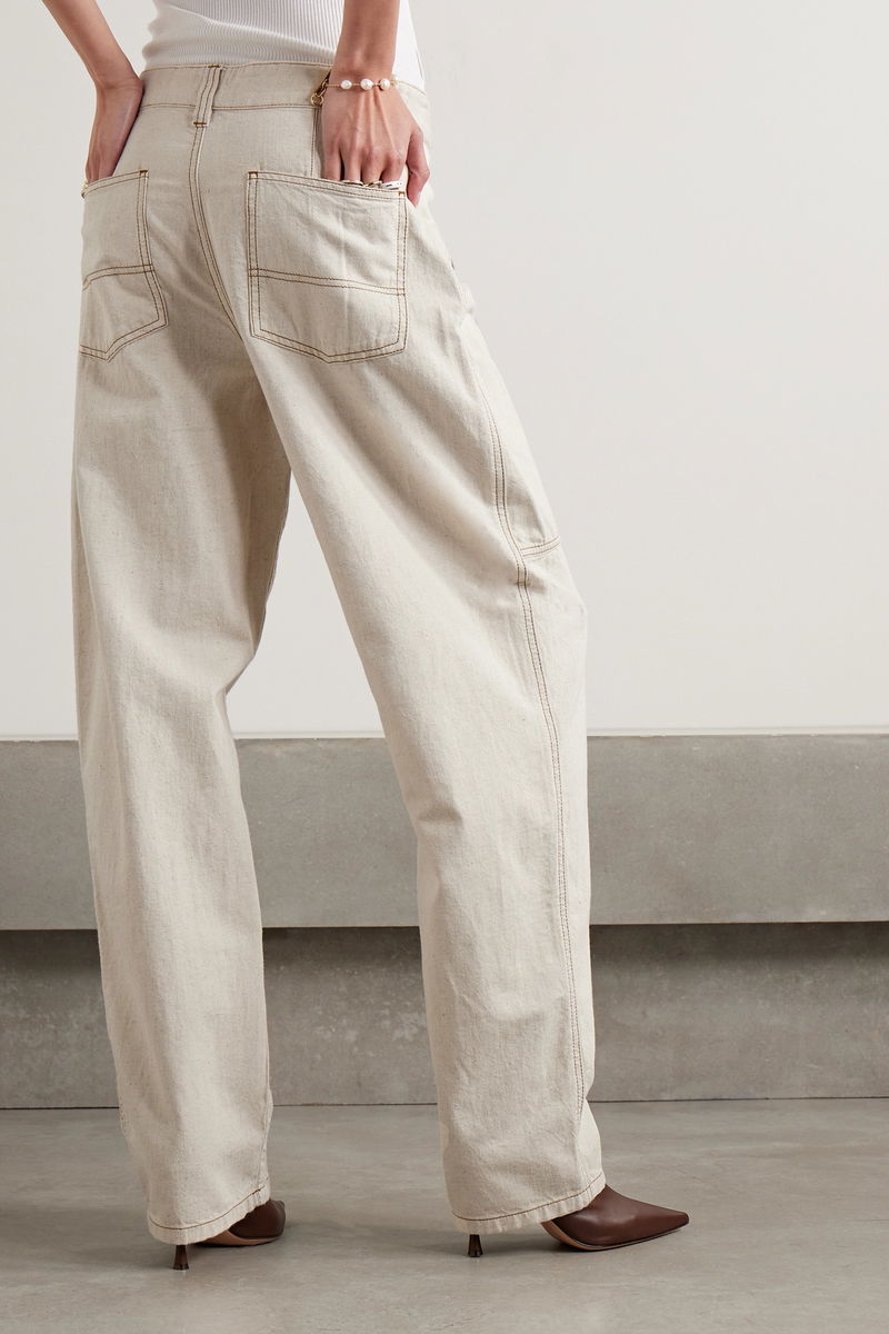 Isabel Marant's 'Fanny' jeans are made from panels of ecru cotton and hemp-blend denim traced with contrasting topstitching, giving them a utilitarian feel. They have a high-rise waist and are fitted with zipped pockets on the slouchy, wide legs. Wear yours with a blazer or cropped top.