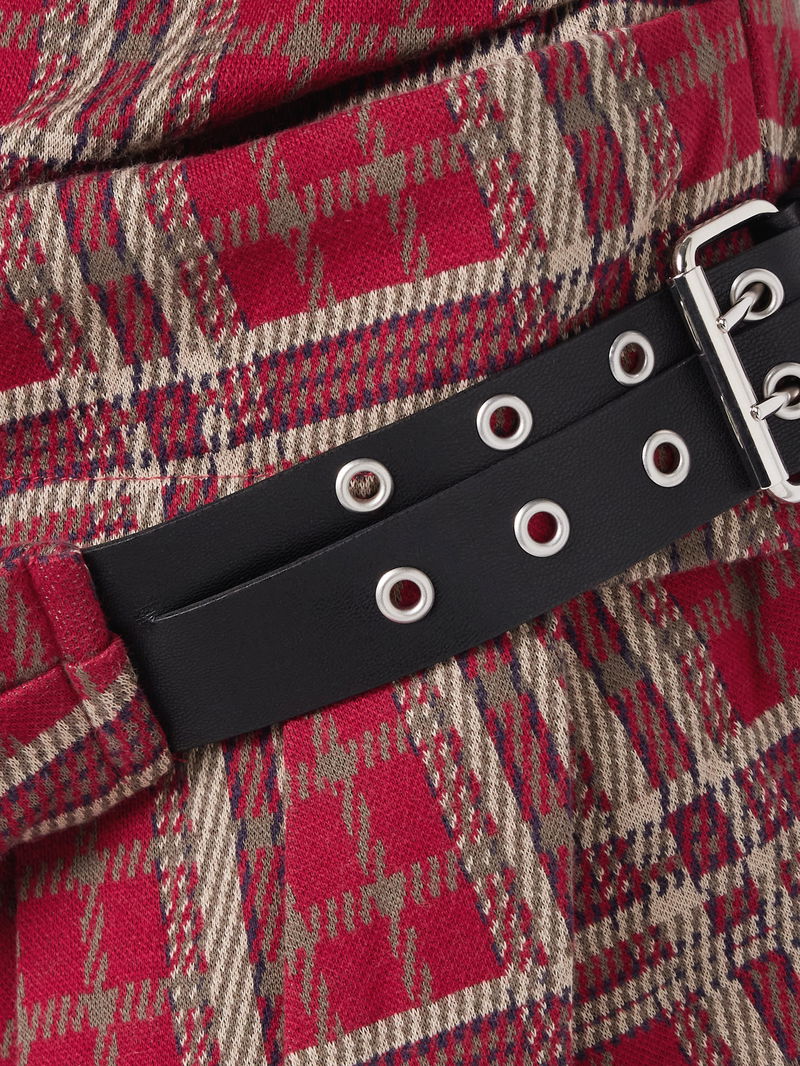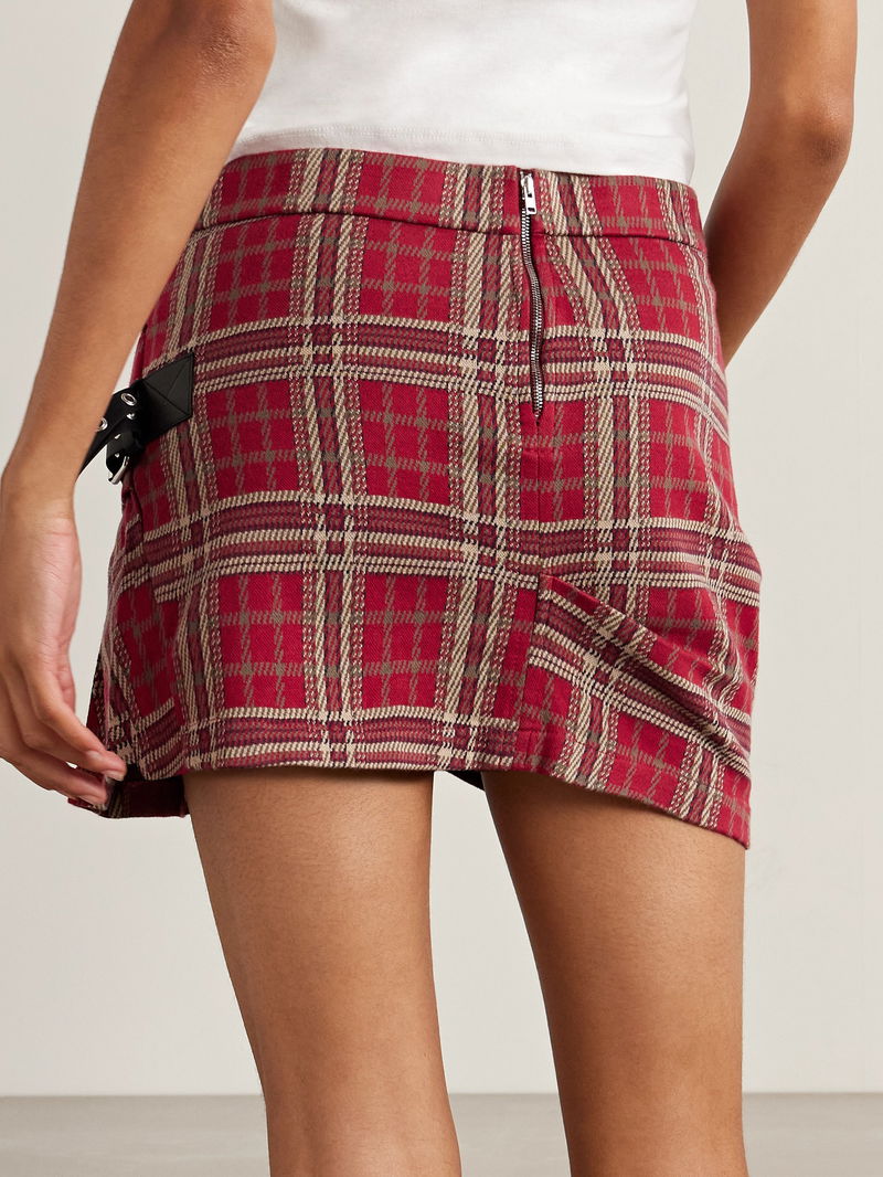 Gisen Belt-Detailed Draped Checked Cotton Mini Skirt