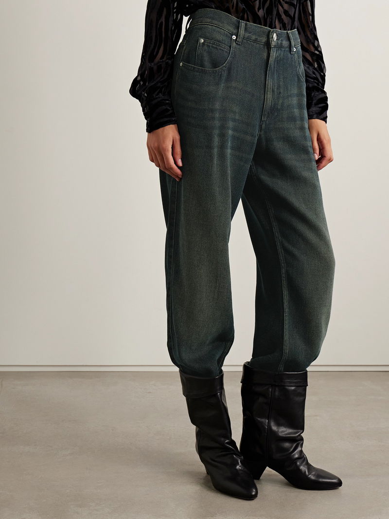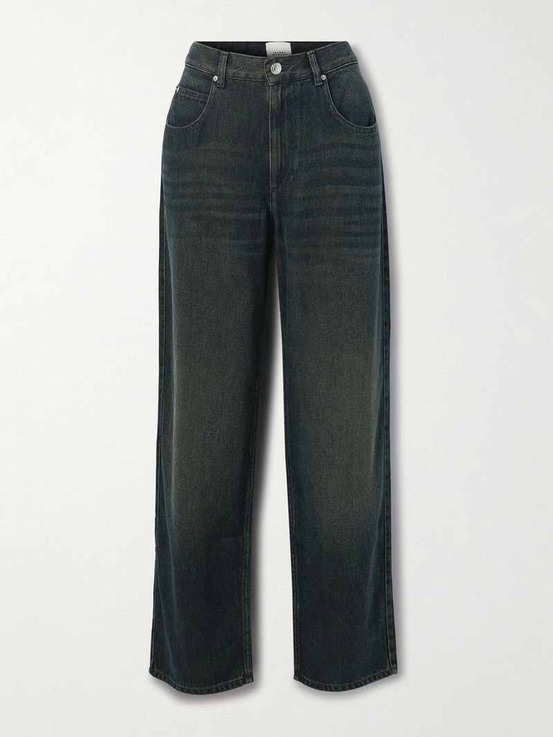 Isabel Marant's 'Jenny' jeans are cut from dark-blue denim that's whiskered and faded to resemble and authentic vintage pair. They're designed to sit high on the waist and have relaxed straight legs.