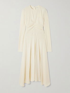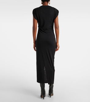 The Keany midi dress from Isabel Marant captures the essence of Parisian chic. The flowing satin design is cinched at the waist and features slit sleeves and a triangular front seam.