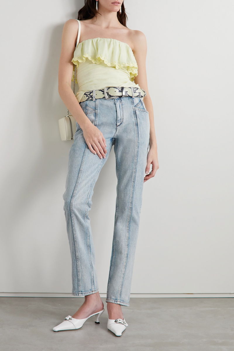 Isabel Marant's 'Laora' jeans have a directional moto feel, thanks to the acid wash and vertical seams running along the front. They're designed with a mid-rise waist and fit slim through the legs. Wear yours with a printed T-shirt or blouse.