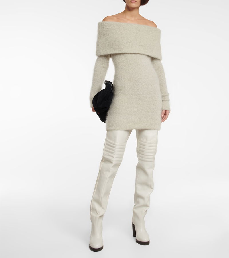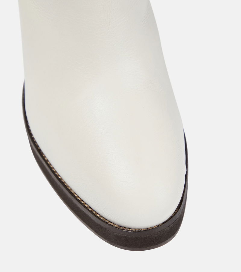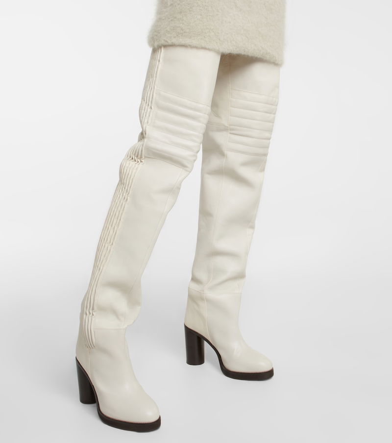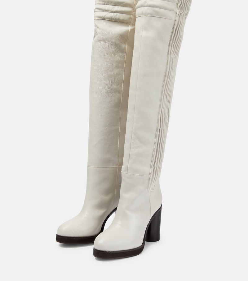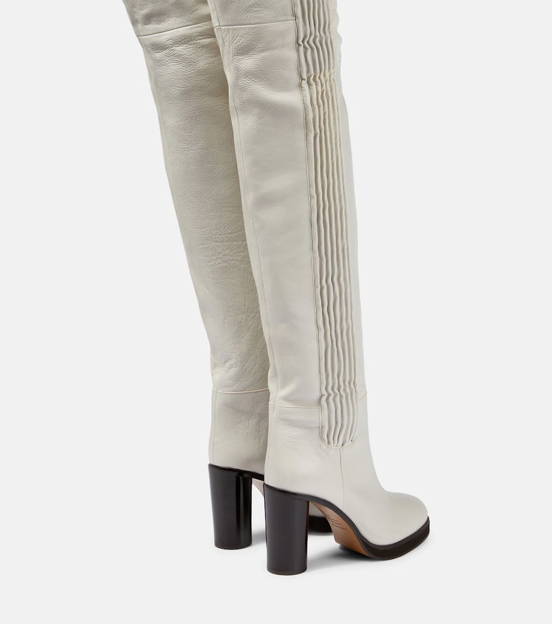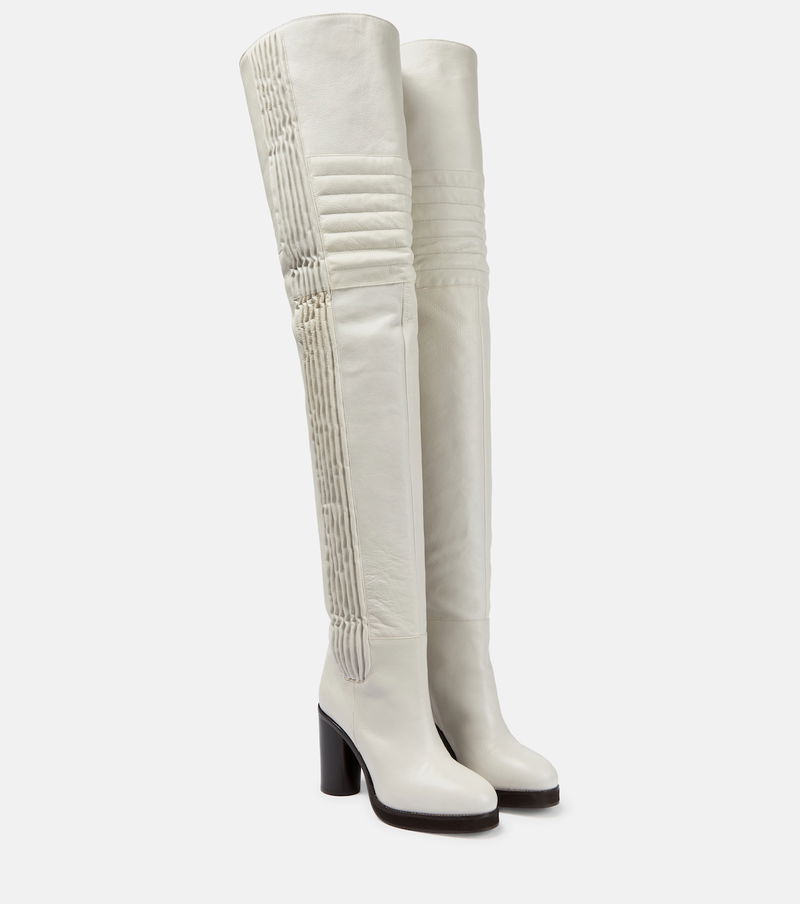Isabel Marant redefines the classic over-the-knee boots with this pair. This style is made from white leather and features an elongating ribbed feature and contrasting black block heels and soles.