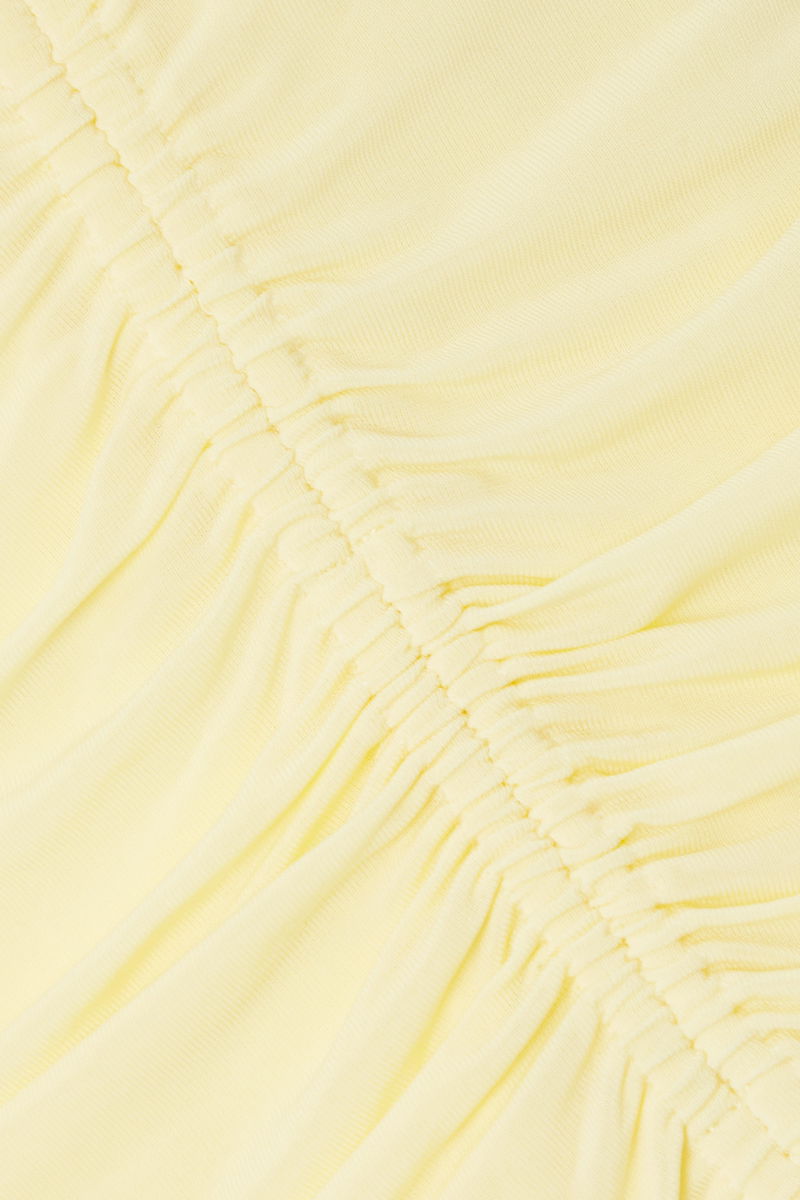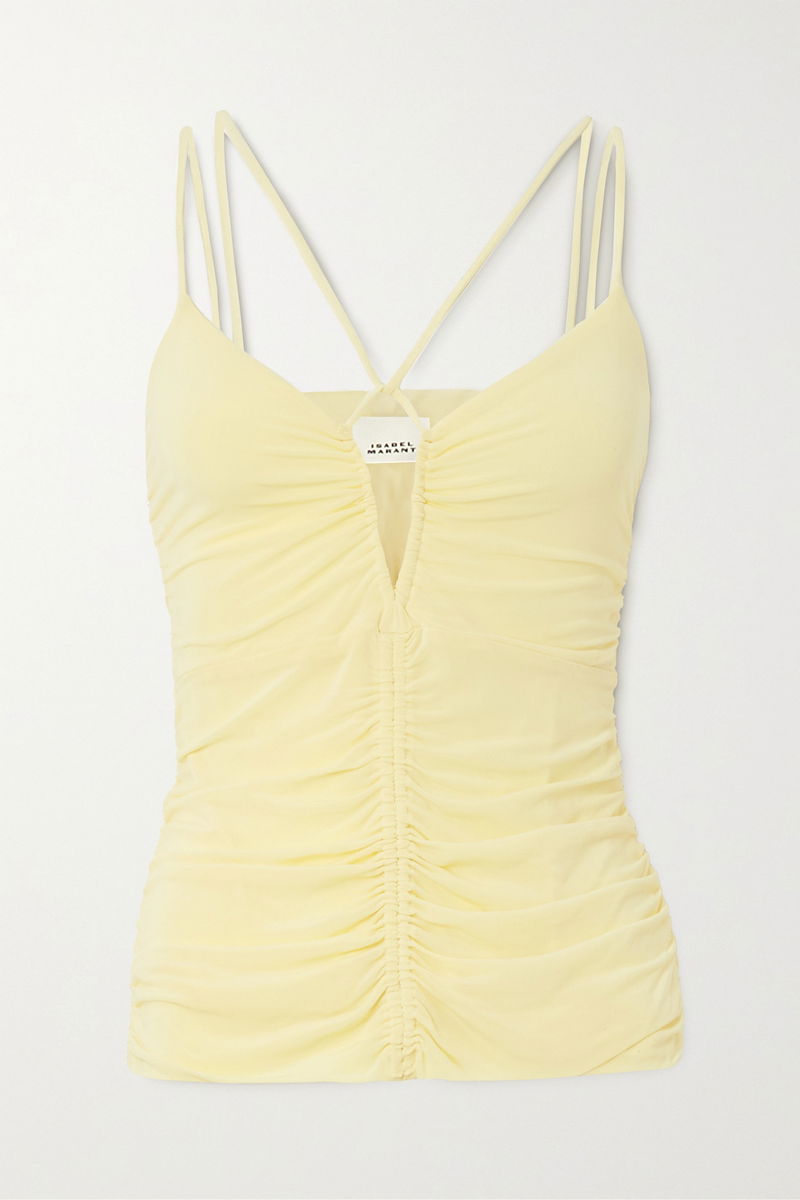 Isabel Marant's 'Leila' top is cut from soft stretch-jersey that's ruched through the body to emphasize its slim fit. It has a low, cutout neckline and straps that cross over at the front. Complement the pastel-yellow hue with gold or silver jewelry.