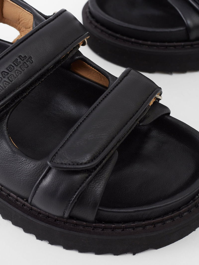 Isabel Marant’s black Madee sandals are crafted from soft leather with a logo-debossed velcro strap and a comfortable moulded insole.