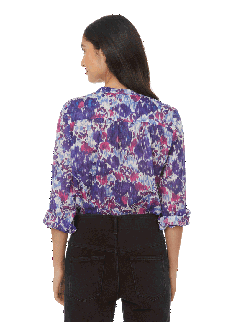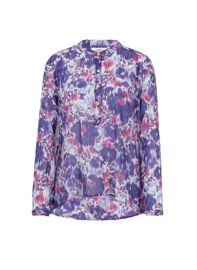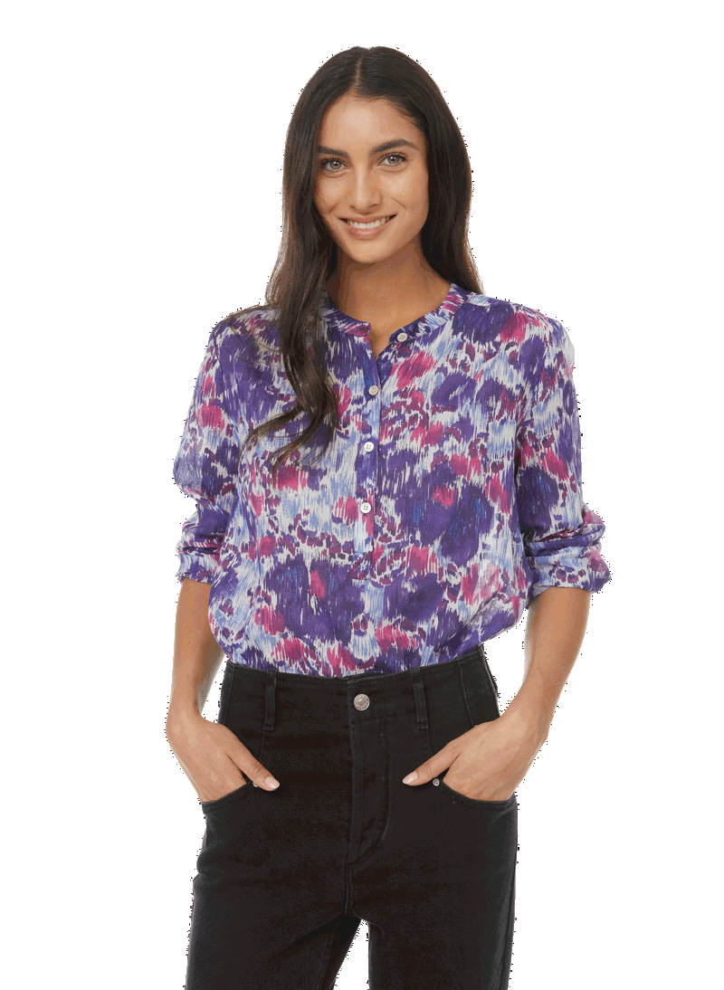 Chic and feminine, the Isabel Marant wardrobe is an ode to elegance. The Maria top from the Spring-Summer 2022 collection is a case in point. Crafted in blue and pink floral-print cotton in an all-over design, this model has a round neck and buttoned fastening for a light, flowing silhouette. A sophisticated basic that is ideal to pair with tailored trousers or a long pleated skirt.