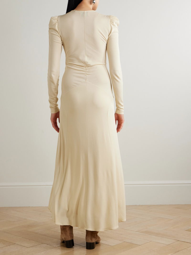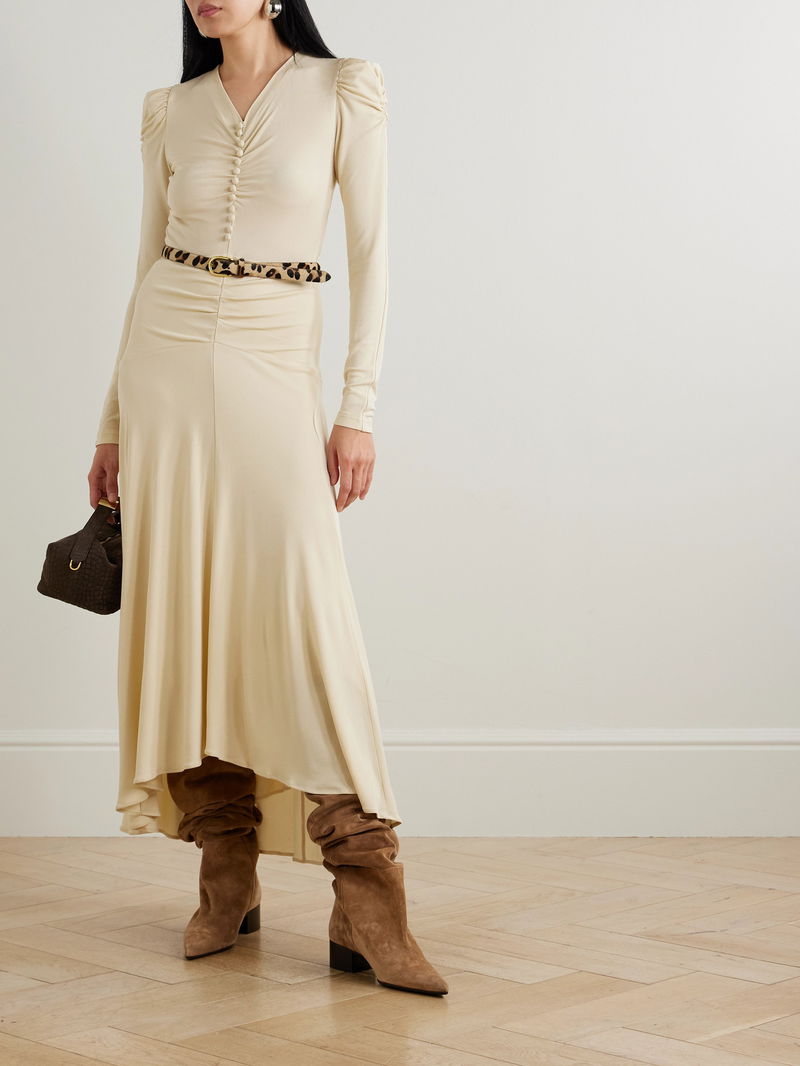 Nejma Asymmetric Gathered Stretch-jersey Midi Dress