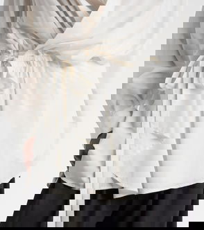 Silk crepe blouse. Gathering throughout.· Round neck· Single-button barrel cuffs· Keyhole and button fastening at back collar.